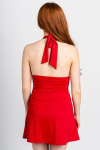 Halter mini dress red