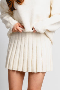 Pleated sweater mini skirt from Lush Fashion Lounge women's boutique in Oklahoma City.