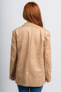 Oversized suede boyfriend blazer from Lush Fashion Lounge women's boutique in Oklahoma City.