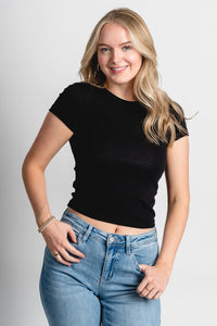 Short sleeve fitted baby tee from Lush Fashion Lounge women's boutique in Oklahoma City.