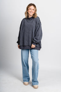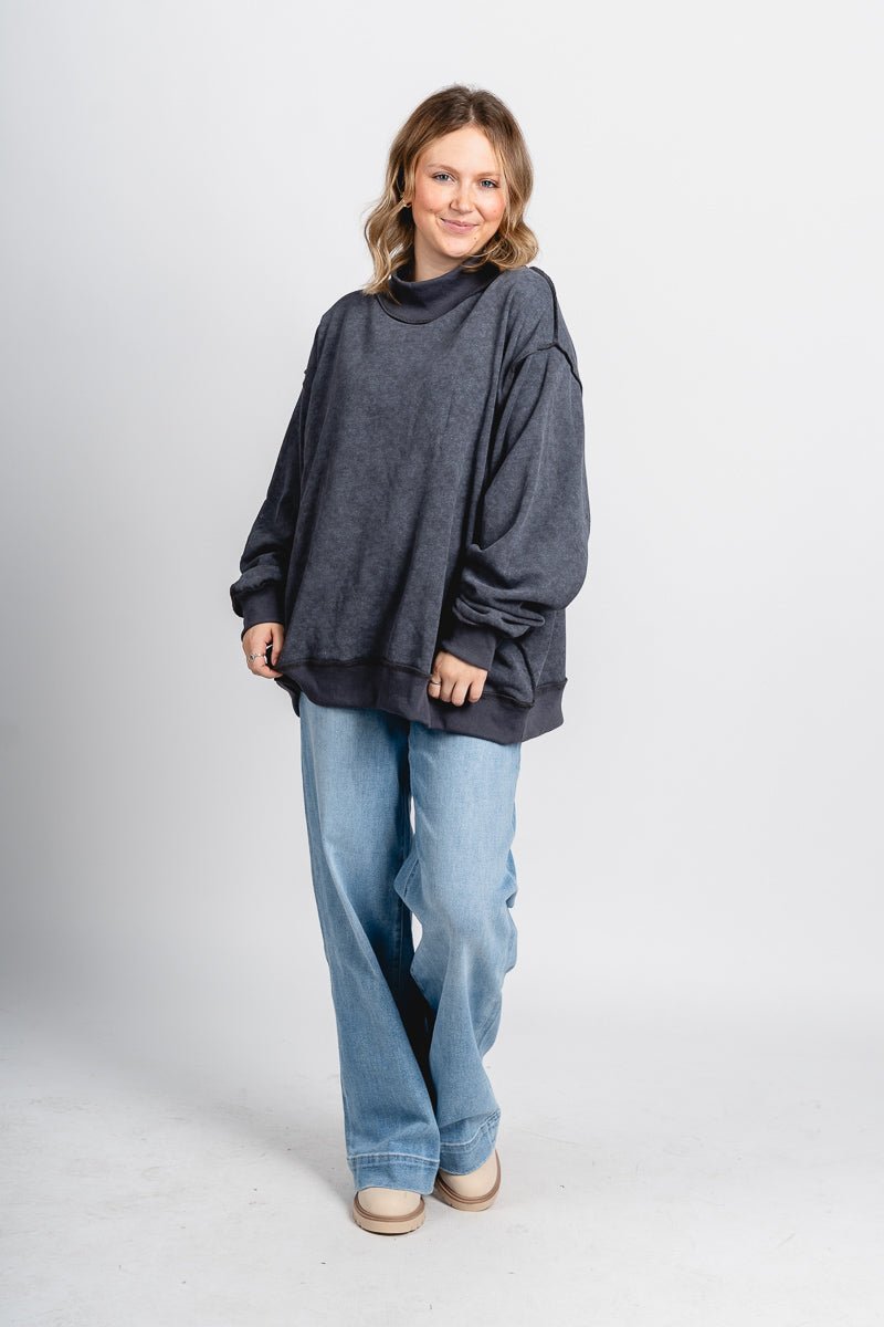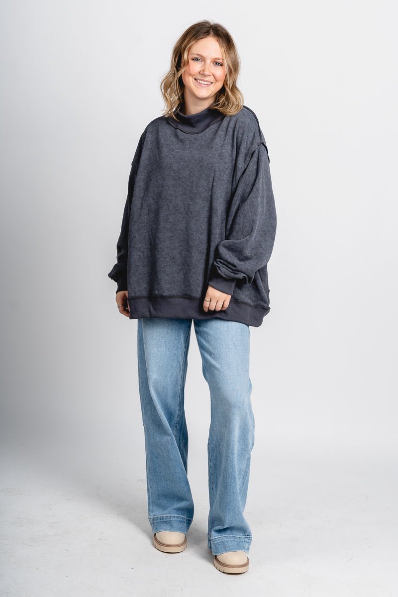 Charcoal oversized mock neck sweatshirt from Lush Fashion Lounge women's boutique in Oklahoma City.