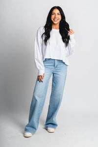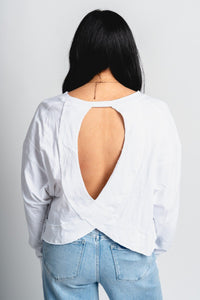 Open back long sleeve top white