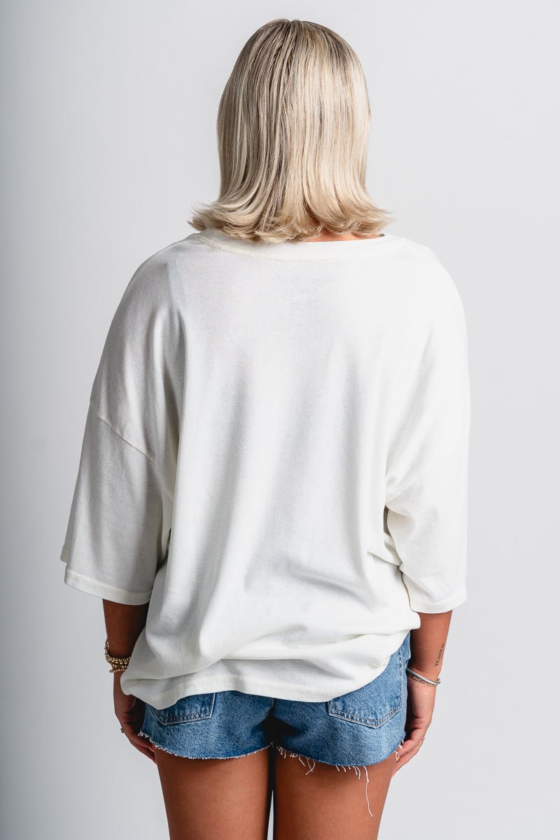 Lush boutique in OKC has a variety of cute graphic tees and more! The cute vintage band tee is a must have! Cute and oversized fit! Pair with jean shorts or biker shorts!