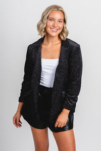 Velvet blazer featuring multi color glitter throughout from Lush Fashion Lounge women's boutique in Oklahoma City.