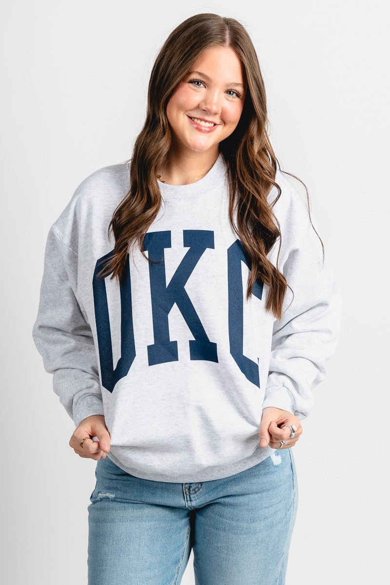 OKC oversized sweatshirt faded navy - Oklahoma City inspired graphic t-shirts at Lush Fashion Lounge Boutique in Oklahoma City