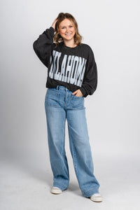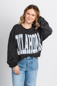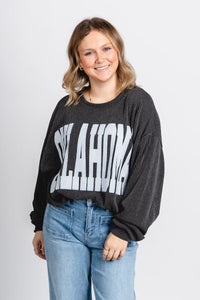 Ribbed oversized sweatshirt featuring "Oklahoma" printed in a large white block font from Lush Fashion Lounge women's boutique in Oklahoma City.