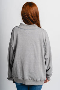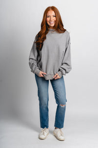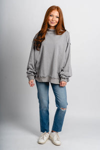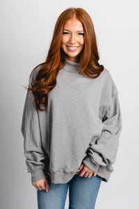 Grey oversized mock neck sweatshirt from Lush Fashion Lounge women's boutique in Oklahoma City.