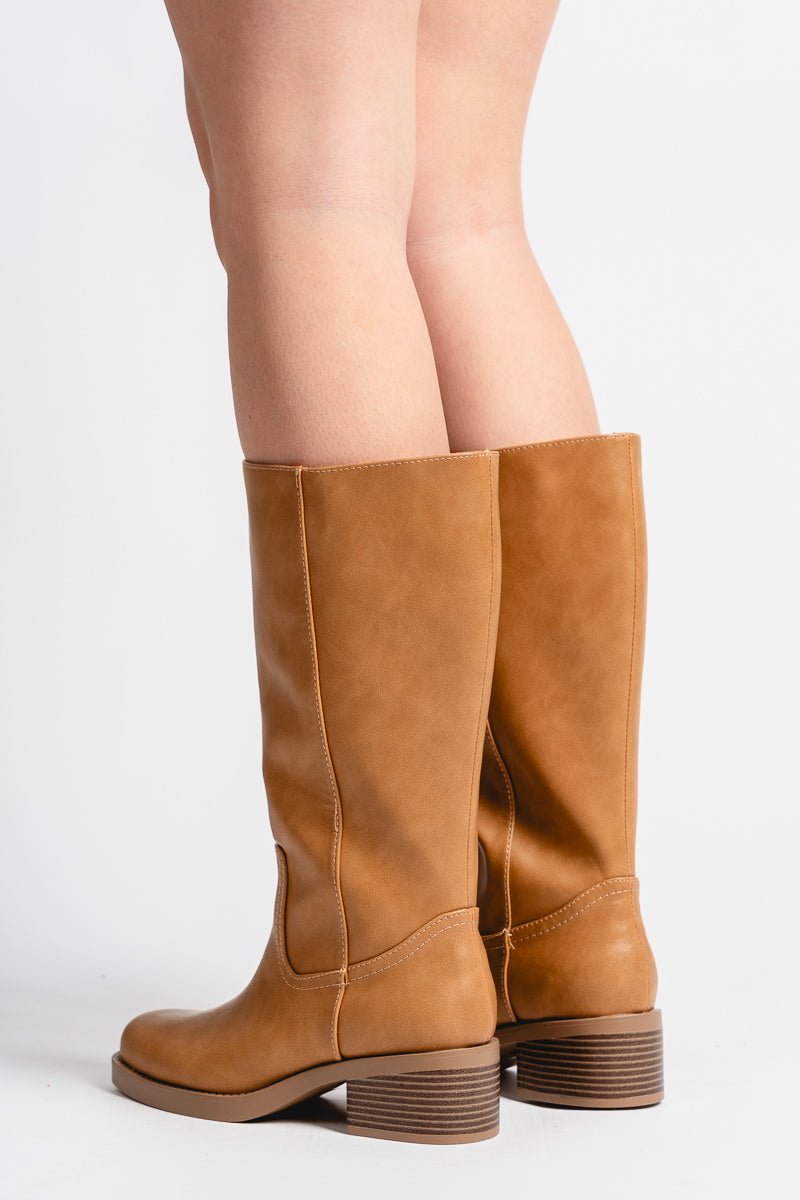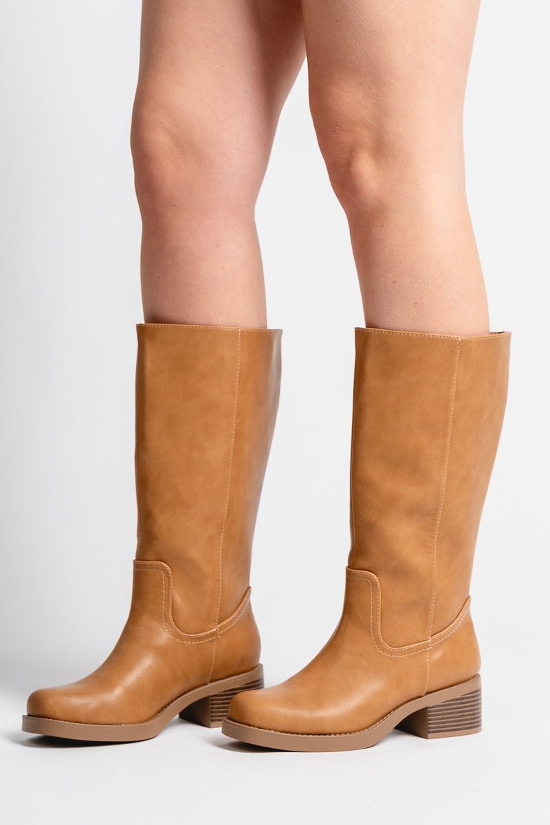 Faux leather riding boots that zip down the side from Lush Fashion Lounge women's boutique in Oklahoma City.