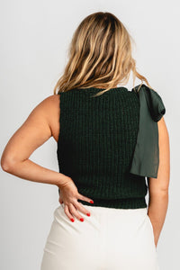 Knit sleeveless sweater featuring chiffon bow at the shoulder from Lush Fashion Lounge women's boutique in Oklahoma City.