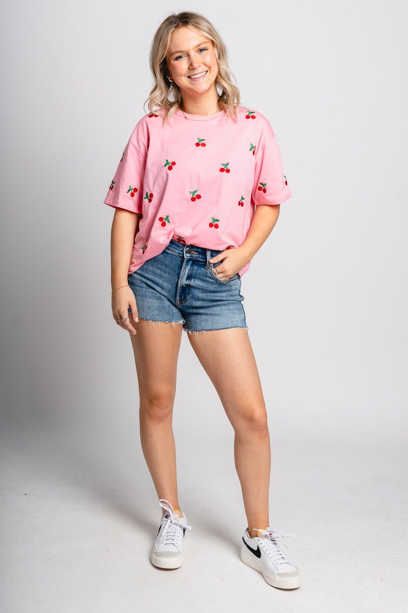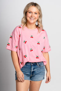 Cherry embroidered tee from Lush Fashion Lounge women's boutique in Oklahoma City.