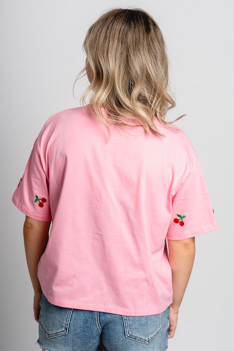 Cherry embroidered tee pink
