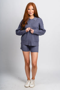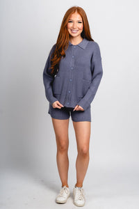Long sleeve collared button up sweater top from Lush Fashion Lounge women's boutique in Oklahoma City.