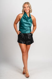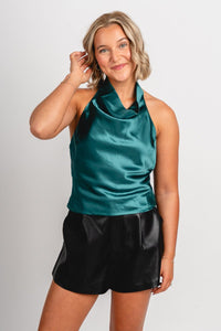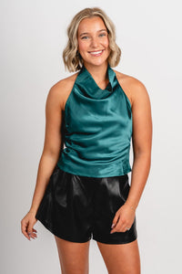 Satin cowl neck halter top from Lush Fashion Lounge women's boutique in Oklahoma City.