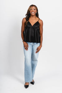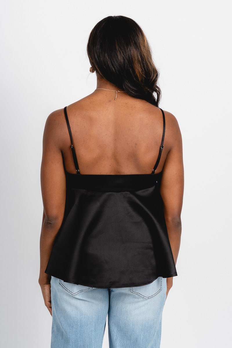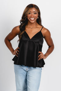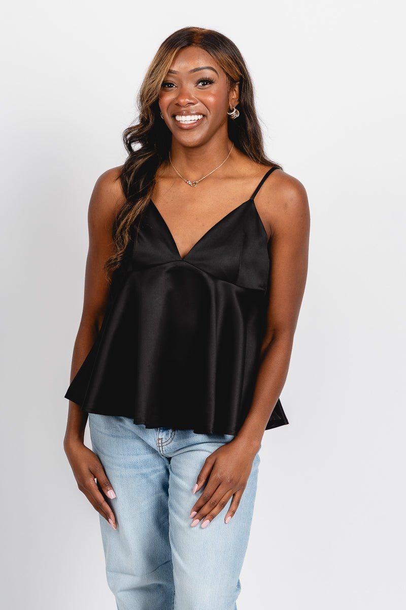 Spaghetti strap cami style top featuring an empire waist and a flare waist line from Lush Fashion Lounge women's boutique in Oklahoma City.