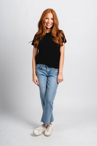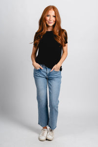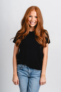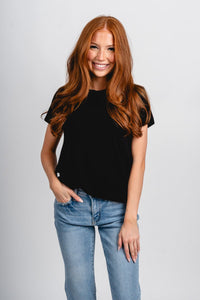Black short sleeve crew neck t-shirt featuring a super soft modal material from Lush Fashion Lounge women's boutique in Oklahoma City.