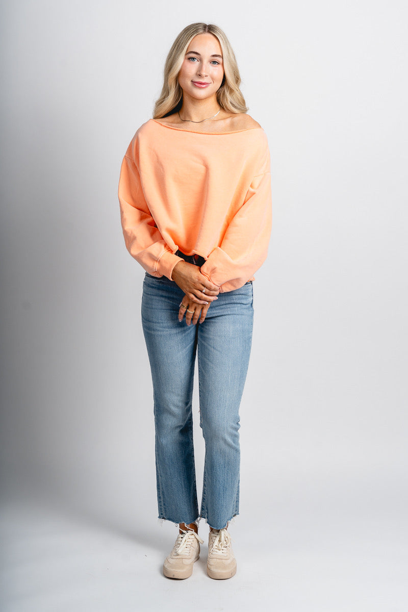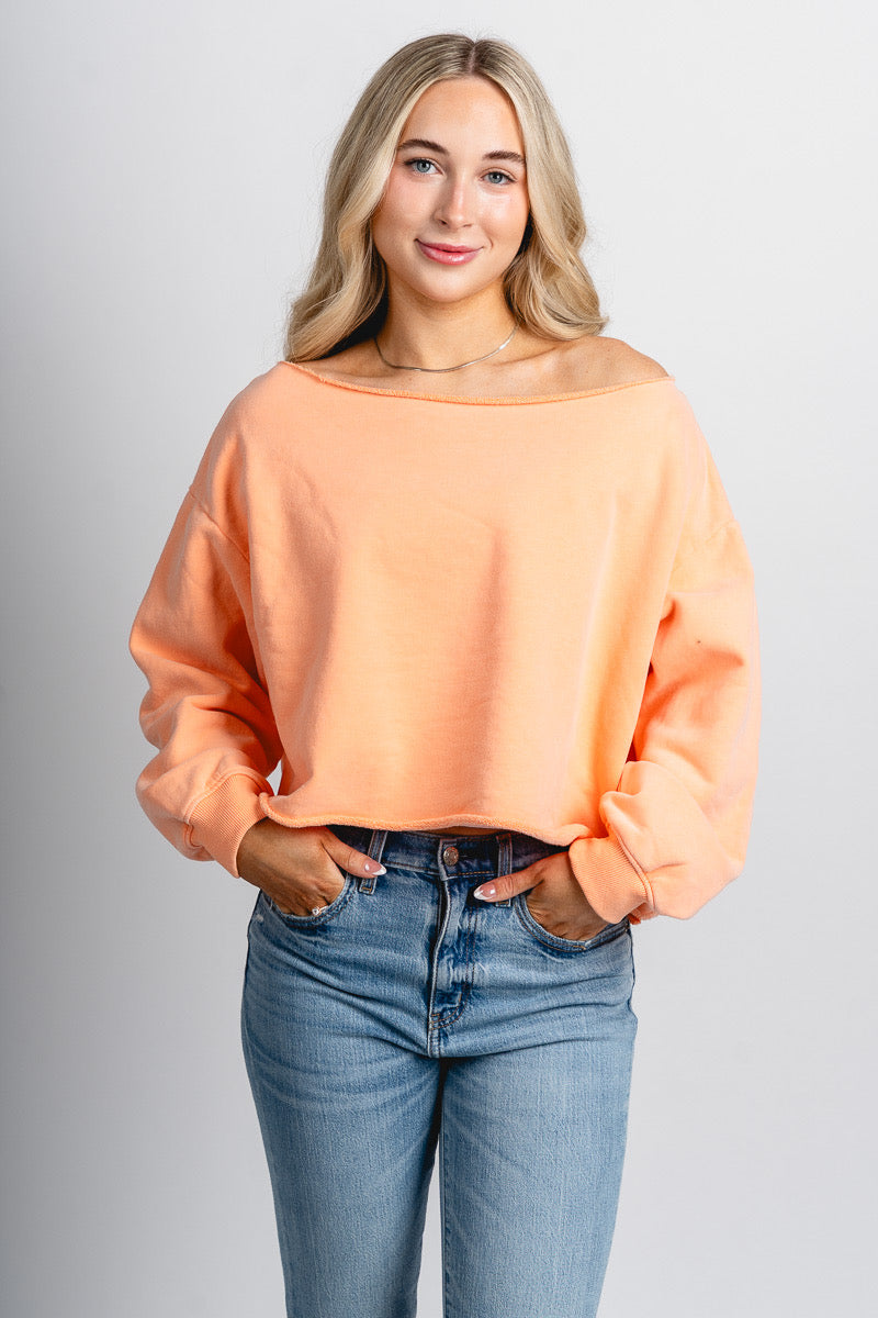 Off shoulder sweatshirt light orange
