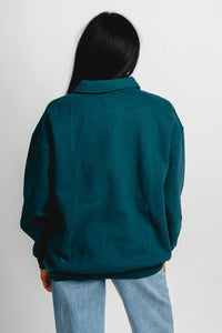 Oversized sweatshirt featuring polo style buttons and a collar from Lush Fashion Lounge women's boutique in Oklahoma City.