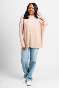Lush boutique in OKC has a variety of cute and cozy tops! This cute mock neck top is a must have! Super soft and oversized!