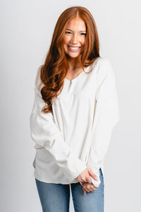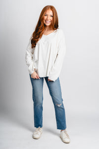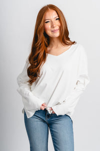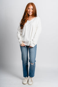 Super soft long sleeve v-neck oversized top from Lush Fashion Lounge women's boutique in Oklahoma City.