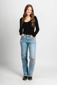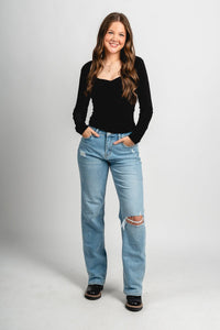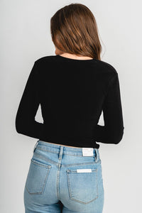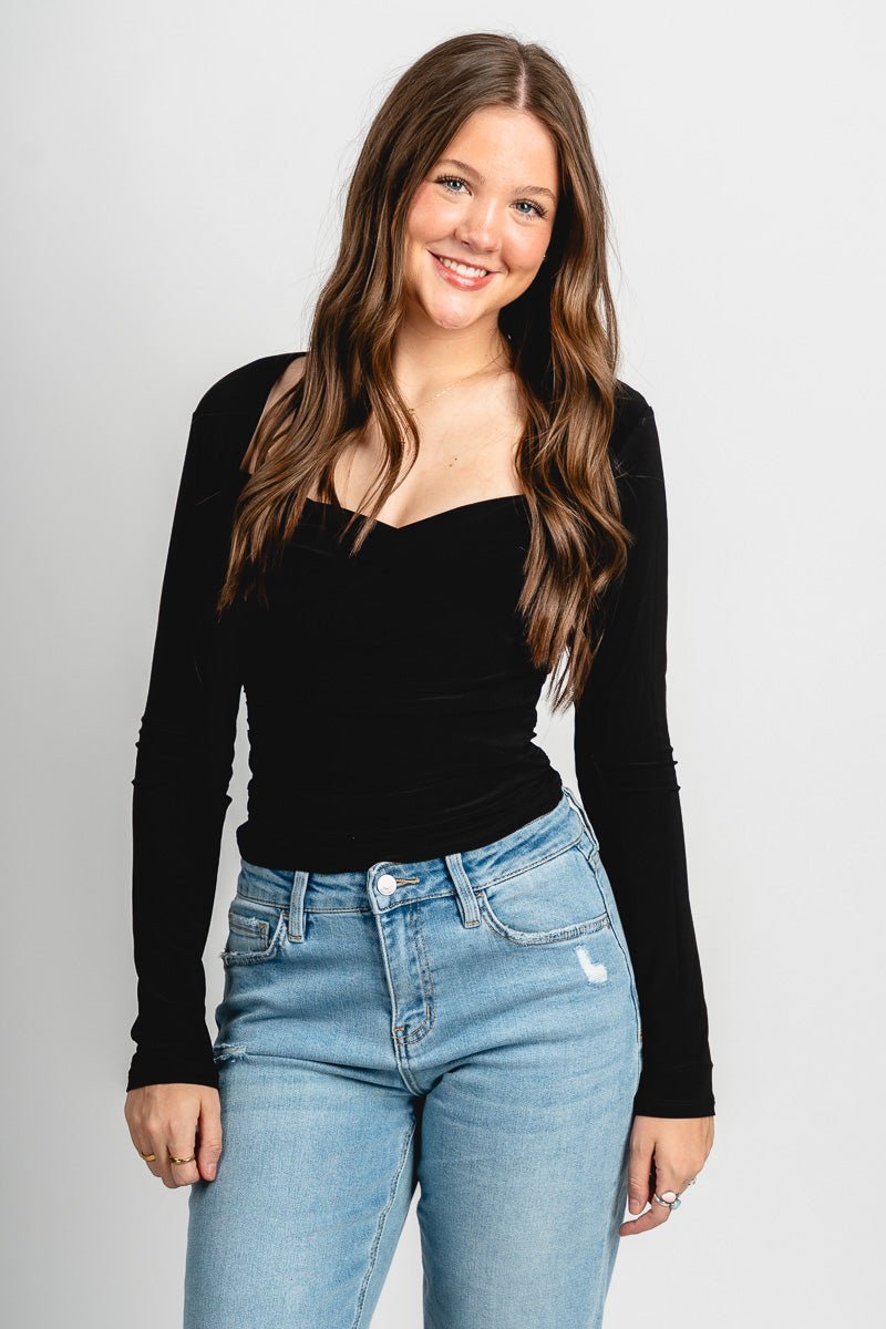 Long sleeve square neck ruched top from Lush Fashion Lounge women's boutique in Oklahoma City.