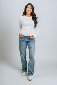 Ribbed long sleeve top white