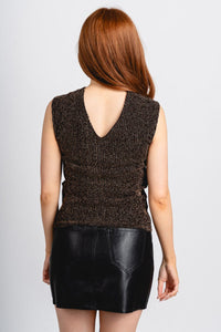 Lush boutique in OKC has a variety of cute New Year's Eve apparel and more! This trendy shimmer tank top is a must have! A cute New Year's Eve top!
