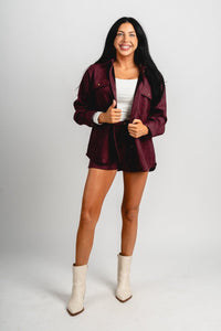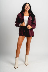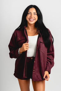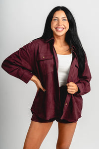 Suede button up collared top featuring two chest pockets from Lush Fashion Lounge women's boutique in Oklahoma City.