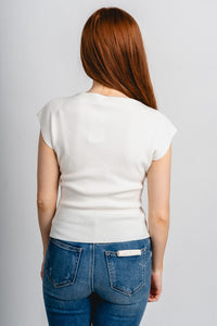 Boat neck sleeveless sweater white