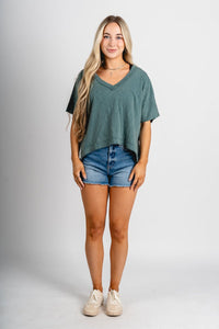 Boxy v-neck short sleeve t-shirt dark teal