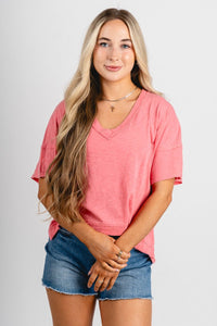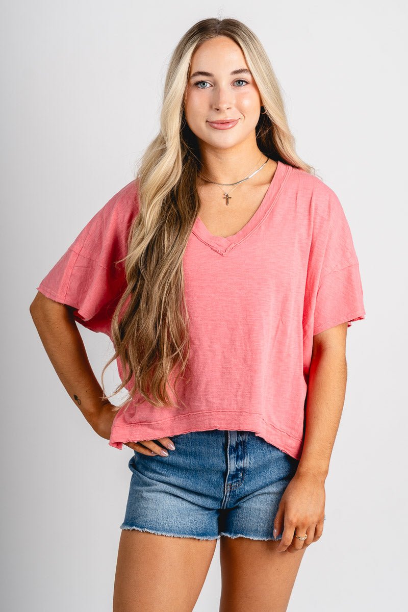 Boxy short sleeve v-neck t-shirt from Lush Fashion Lounge women's boutique in Oklahoma City.