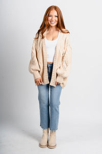 Cable knit open cardigan from Lush Fashion Lounge women's boutique in Oklahoma City.