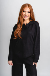 Collared long sleeve top black