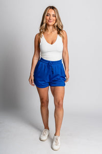 Drawstring sweat shorts from Lush Fashion Lounge women's boutique in Oklahoma City.