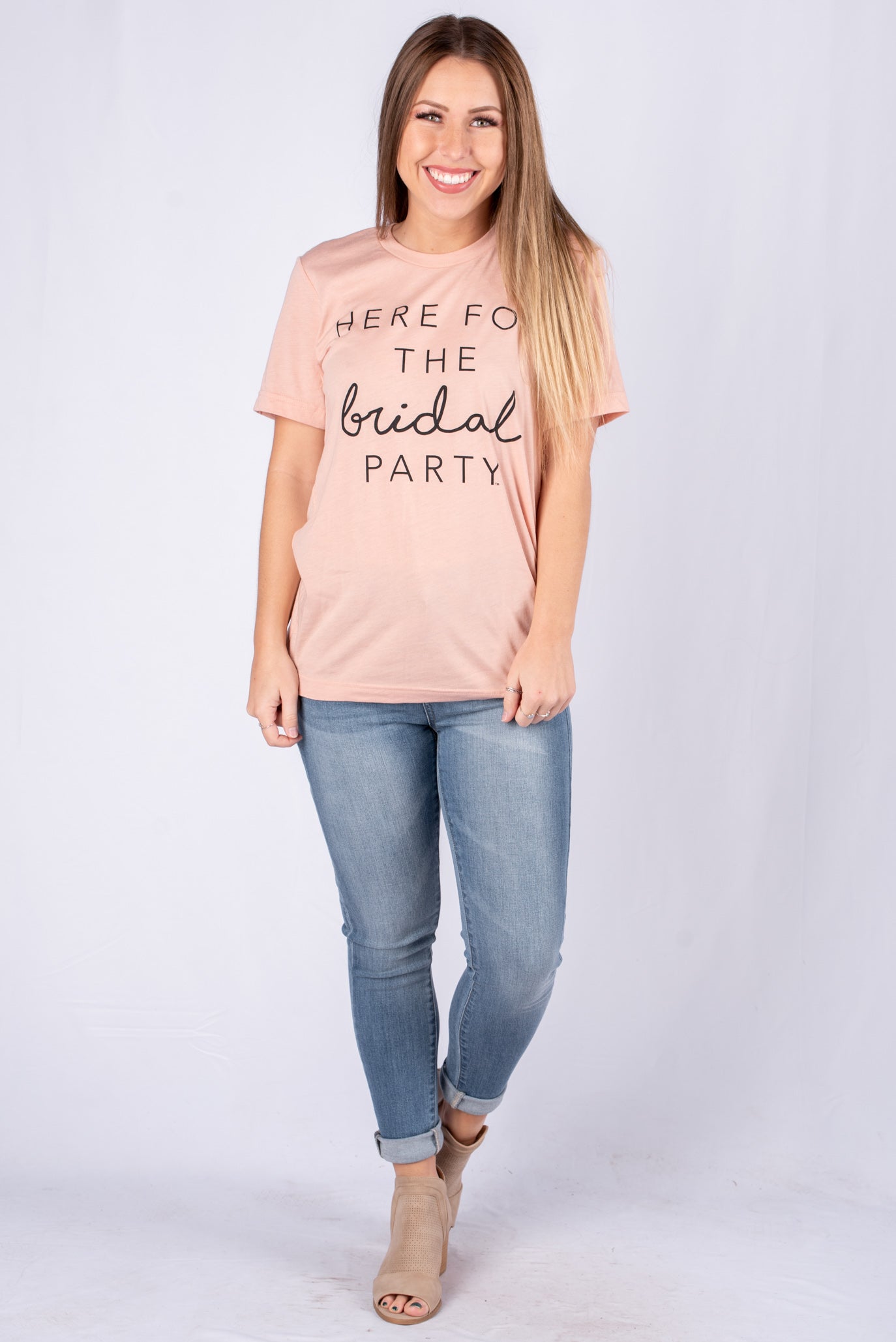 Here for the bridal party unisex short sleeve t-shirt peach.