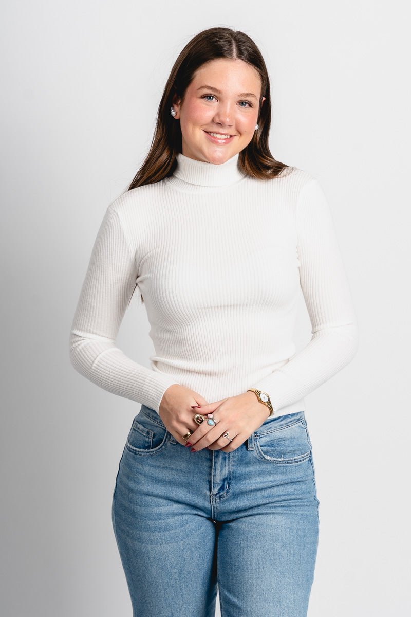 Ribbed long sleeve turtleneck sweater top from Lush Fashion Lounge women's boutique in Oklahoma City.