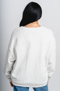 Lush boutique in OKC has a variety of cute Valentine's Day sweatshirts and more! This cozy Valentine's Day sweatshirt is a must have!