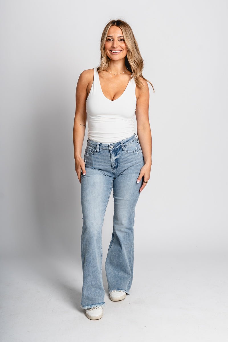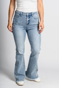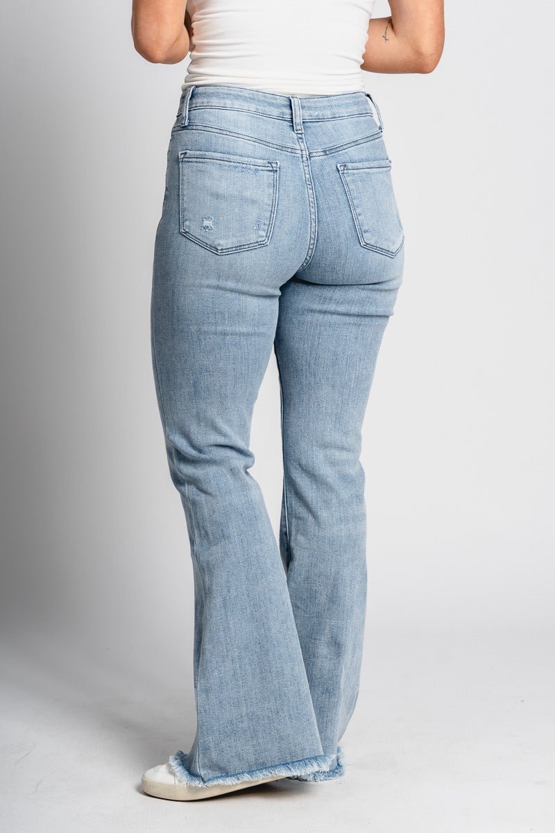 Lovervet high rise flare jeans from Lush Fashion Lounge women's boutique in Oklahoma City.