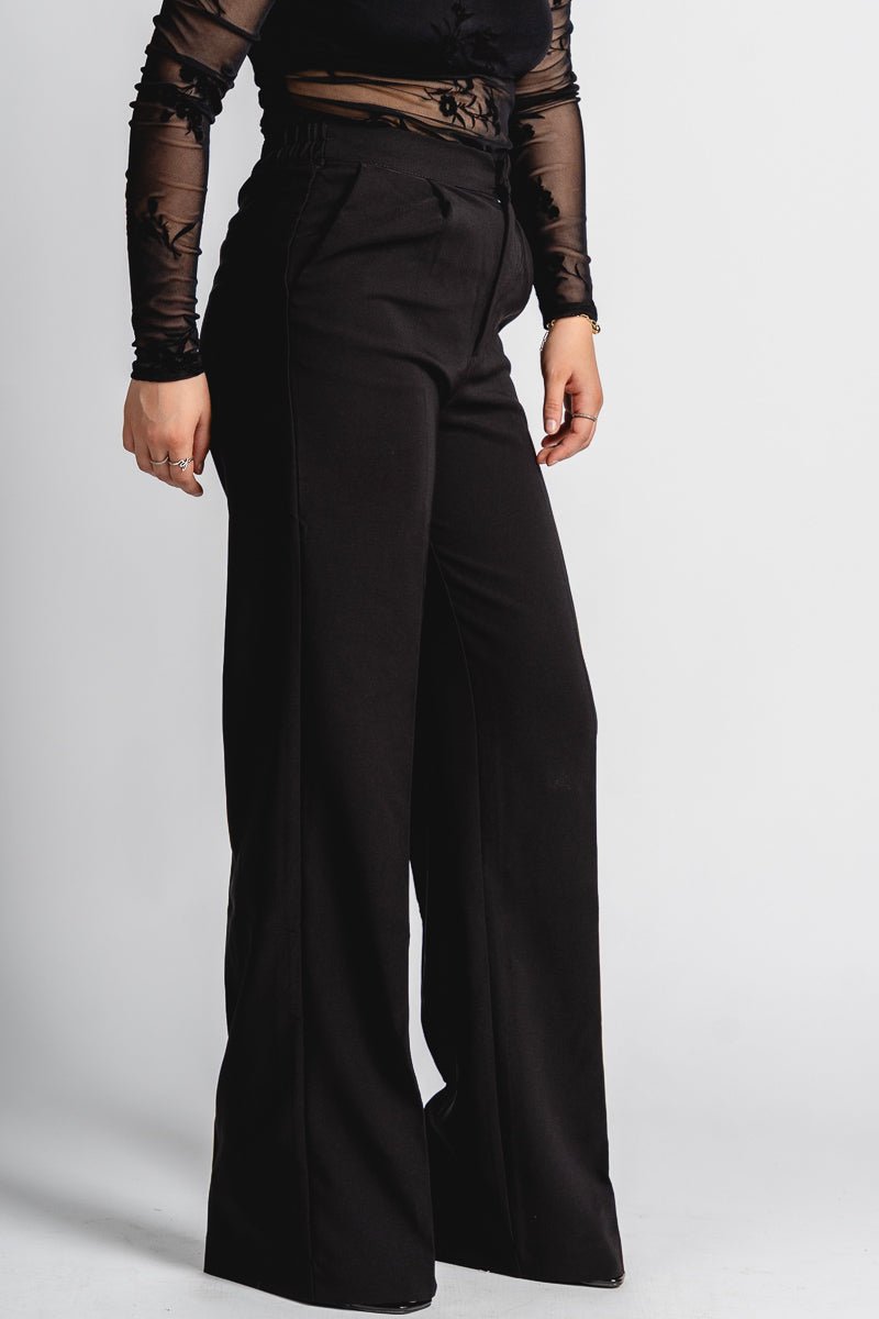 Wide leg pants, with clasp closer, and back pocket from Lush Fashion Lounge women's boutique in Oklahoma City.