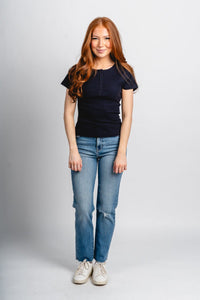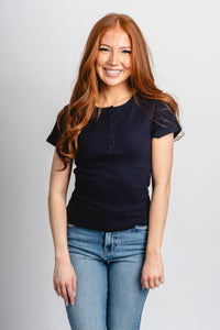 Short sleeve henley top navy