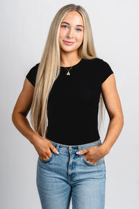 Short sleeve ribbed bodysuit black