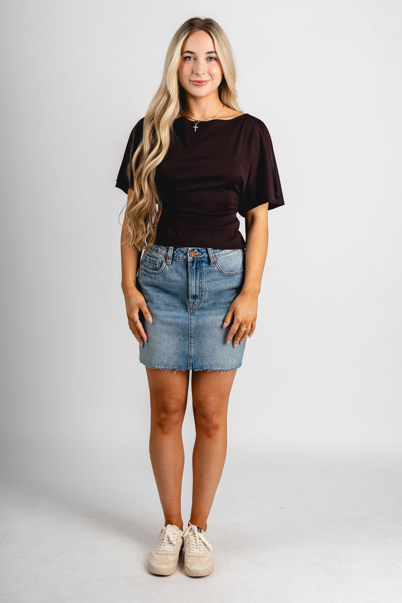 Short sleeve tie back top brown