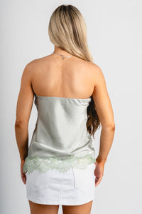 Strapless lace trim top light sage