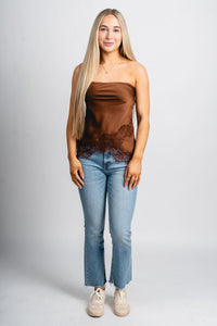 Strapless lace trim top mocha