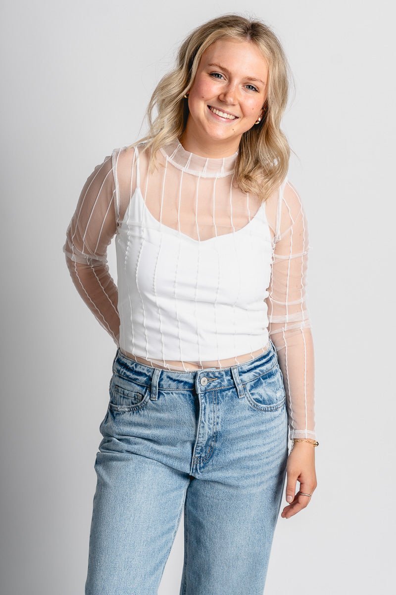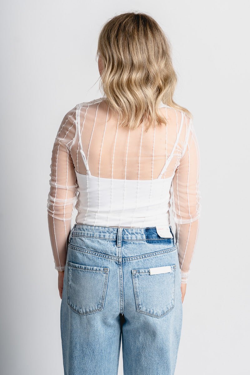 Striped mesh bodysuit from Lush Fashion Lounge women's boutique in Oklahoma City.