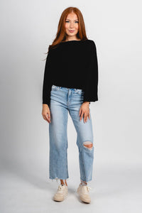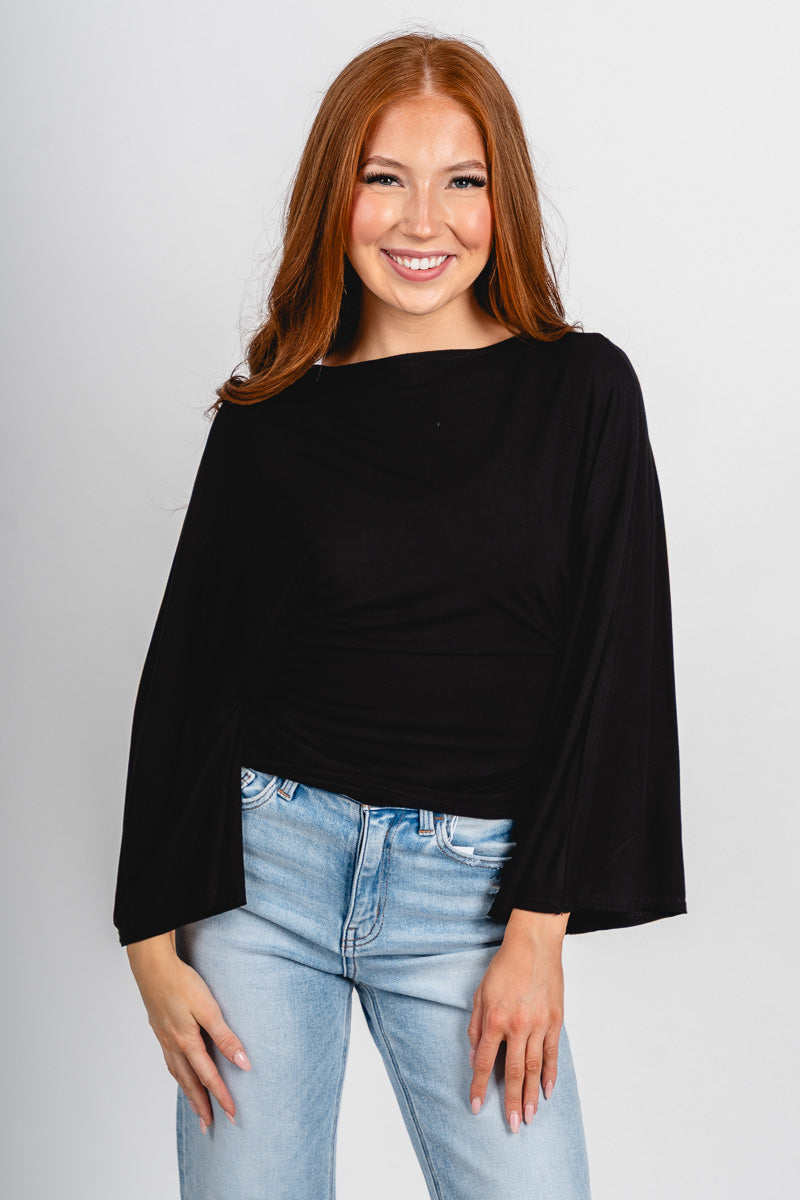 Long sleeve top featuring dolman style sleeves and ties on each side that allow for a front tie or back tie from Lush Fashion Lounge women's boutique in Oklahoma City.
