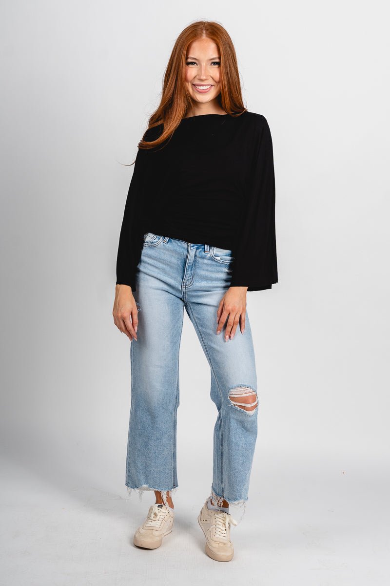 Tie back long sleeve top black