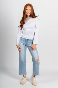 Tie back long sleeve top ivory